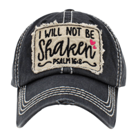 I WILL NOT BE SHAKEN EMBROIDERED BASEBALL CAP FOR LADIES, SCRIPTURE CAP