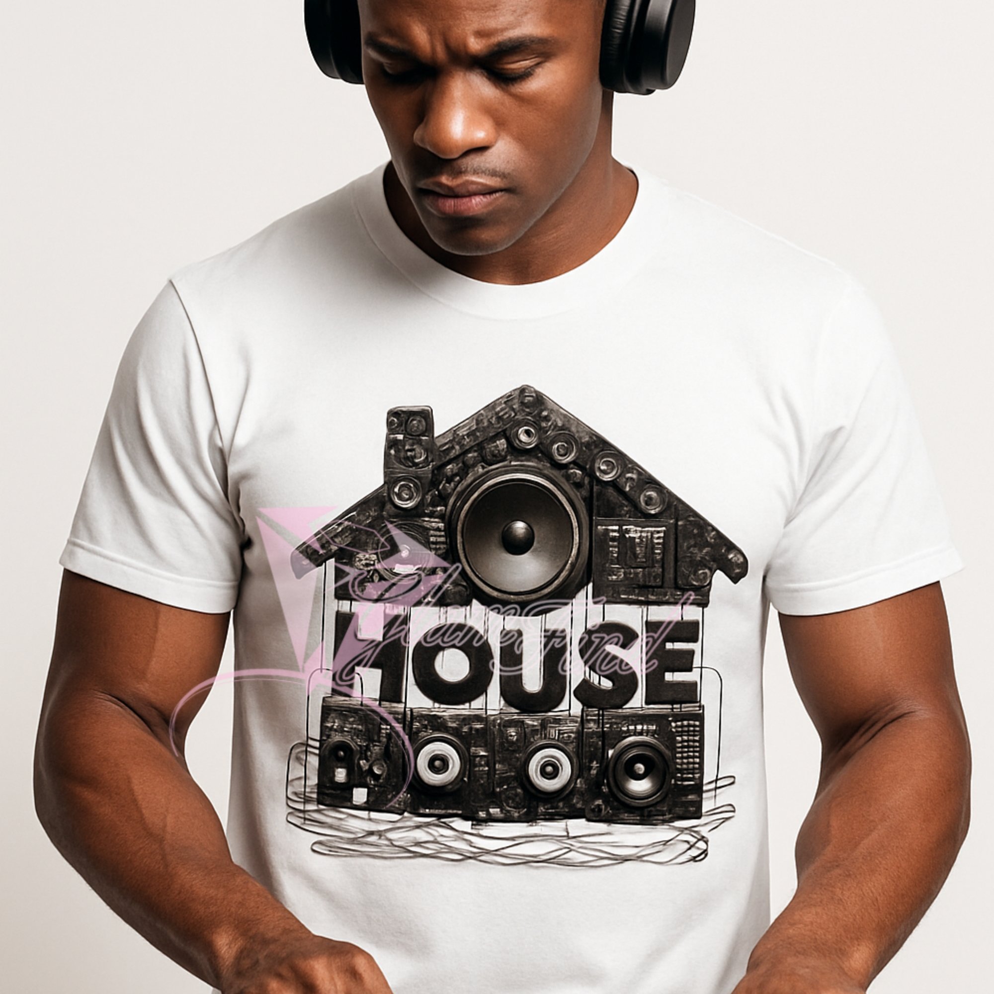 UNISEX WHITE HOUSE MUSIC TEE FOR DJ’S, HOUSE MUSIC LOVERS